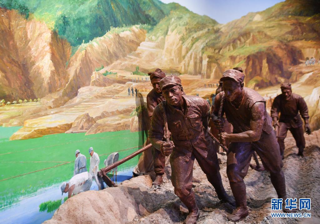 南泥湾大生产纪念馆内的雕塑作品(7月22日摄)。