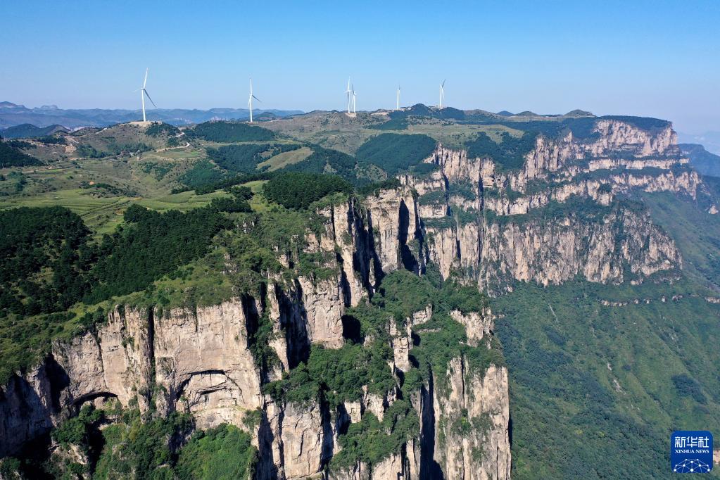 这是2021年9月8日在山西省平顺县玉峡关镇拍摄的太行山风光(无人机照片)。