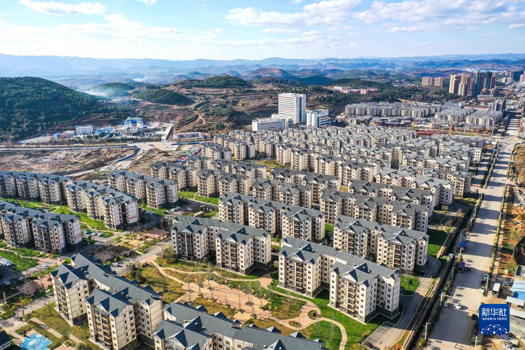 这是贵州省威宁县五里岗街道朝阳新城和阳光新城易地扶贫搬迁安置小区(11月28日摄,无人机照片)。