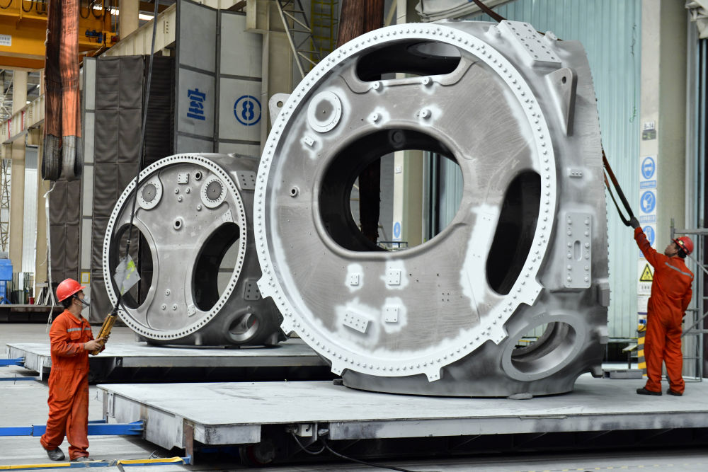 铸件最大单重约160吨、一片风机叶片长达100多米、一个轮毂直径约5米……走进山东国创精密机械有限公司,各类大型风电装备琳琅满目。目前这家企业风电铸件国内市场占有率在30%以上。