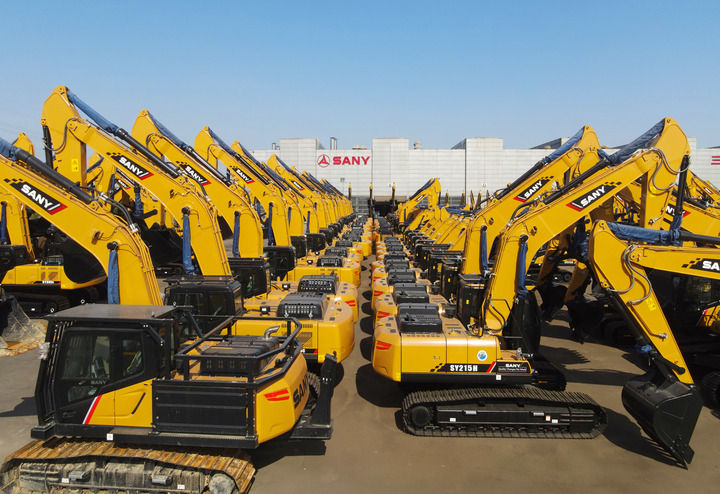 上海自贸试验区临港新片区,三一重机生产基地内,每20分钟就有一台中型挖掘机下线。1月至4月,三一重机中型挖掘机产量超4000台,销量同比增长超过20%。