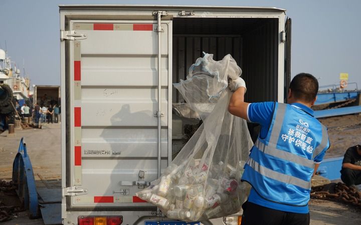 在浙江台州大陈岛,居民从海滩上捡拾塑料瓶和破损渔网,送到岛上名为“小蓝之家”的回收点。有的居民靠回收海洋塑料垃圾,每月可增加1000多元收入。这些废旧塑料经过处理后,被做成汽车配件、行李箱、手机壳等发往全球各地。