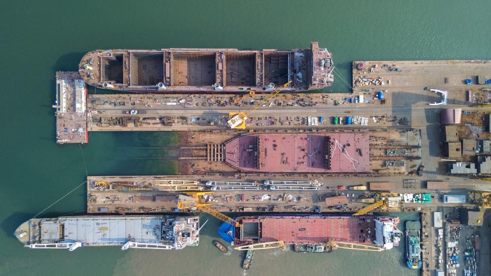 山东省荣成市黄海造船有限公司厂区生产场景。
