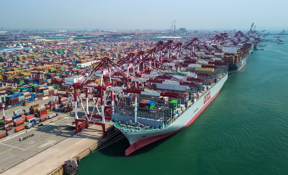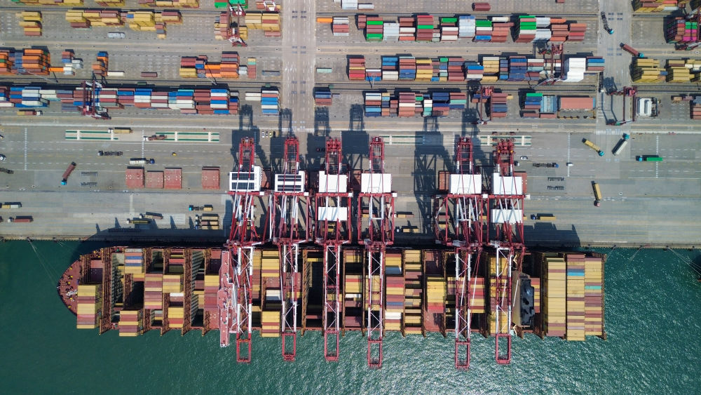 青岛港集装箱码头。