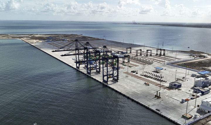 在埃及亚历山大拍摄的由中国港湾工程有限责任公司承建的阿布基尔集装箱码头。