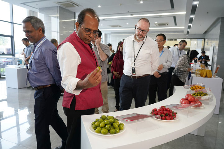 参加上海合作组织减贫和可持续发展论坛的嘉宾在陕西杨凌种业创新中心考察。