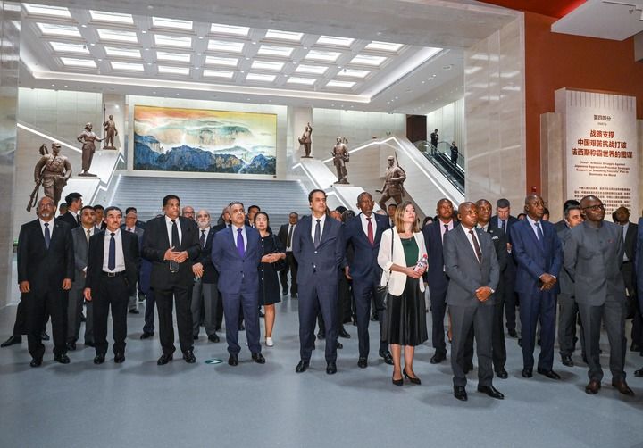 驻华外交官来到中国人民抗日战争纪念馆,参观纪念中国人民抗日战争暨世界反法西斯战争胜利80周年主题展览《为了民族解放与世界和平》。