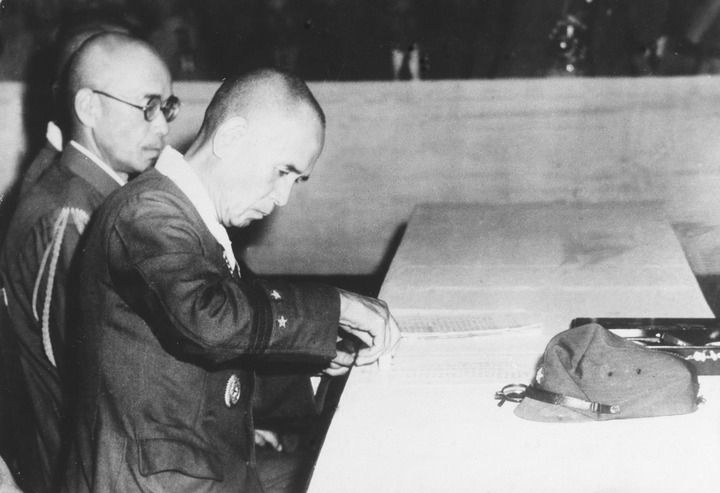 日本投降仪式在东京湾“密苏里”号军舰上举行。