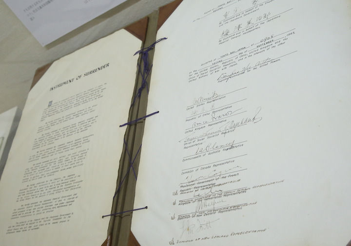 在日本东京外务省外交史料馆内拍摄的日本二战无条件投降书原件。