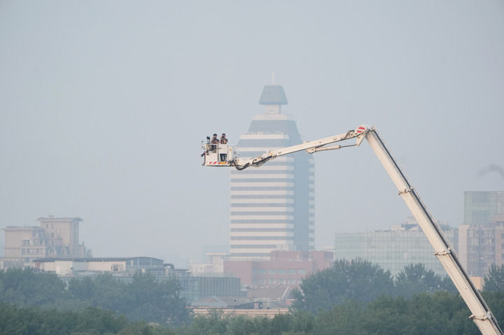 报道纪念中国人民抗日战争暨世界反法西斯战争胜利80周年大会的媒体记者在工作中。