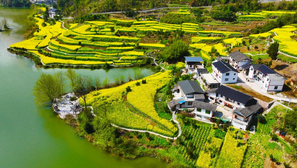重庆市黔江区阿蓬江镇大坪村油菜花开放。