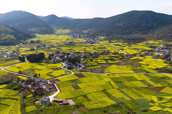 汉中市南郑区阳春镇陈村的油菜花海。新华社记者 邹竞一 摄