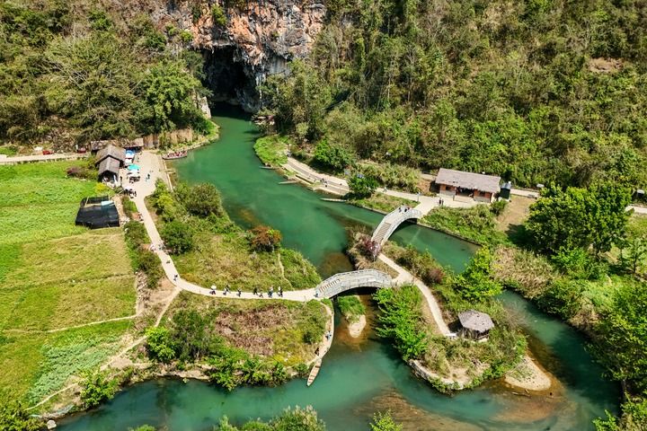 游客在云南省文山壮族苗族自治州广南县坝美景区游览。近年来,当地深入挖掘坝美村农文旅融合发展潜力,一方面打造沉浸式旅游体验项目,让游客在欣赏自然风光的同时,感受壮乡传统农耕文化;另一方面景区积极吸纳本地村民就业,鼓励其因地制宜创业增收,推动农业与旅游业互促共进。