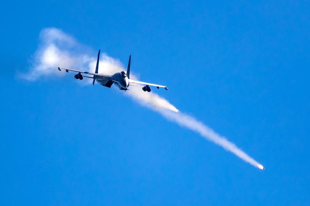 空军航空兵某旅“强军先锋飞行大队”飞行员驾驶战机进行对地打靶训练。