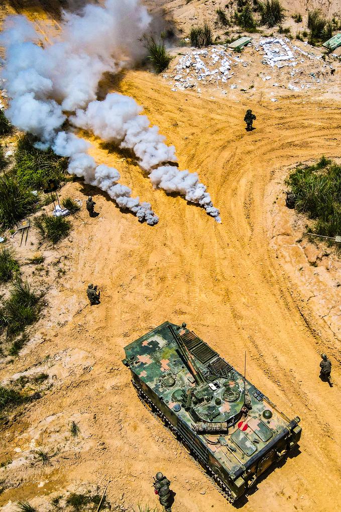 陆军第73集团军某旅“强军精武红四连”组织官兵开展连贯战术训练。
