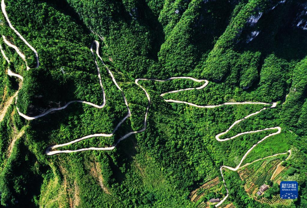 这是下庄村通往外界的公路(2020年7月3日摄,无人机照片)。