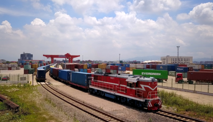 从铁路义乌西站发车的“义新欧”中欧班列。