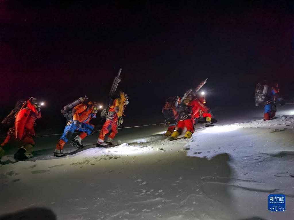 5月4日凌晨,珠峰科考队员从突击营地出发,向珠穆朗玛峰峰顶发起冲刺。