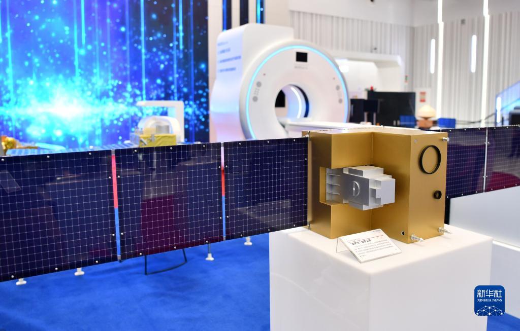 在安徽创新馆拍摄的“墨子号”量子卫星模型(2020年8月25日摄)。