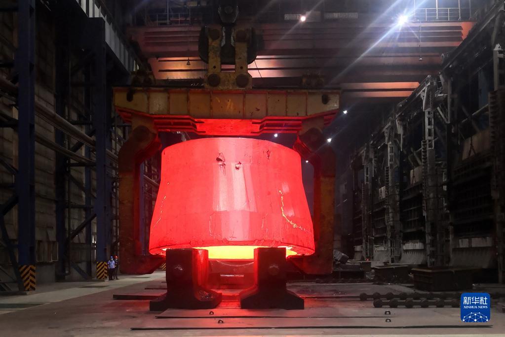 中国一重制造的世界最大异形加氢筒体锻件(2022年8月30日摄)。