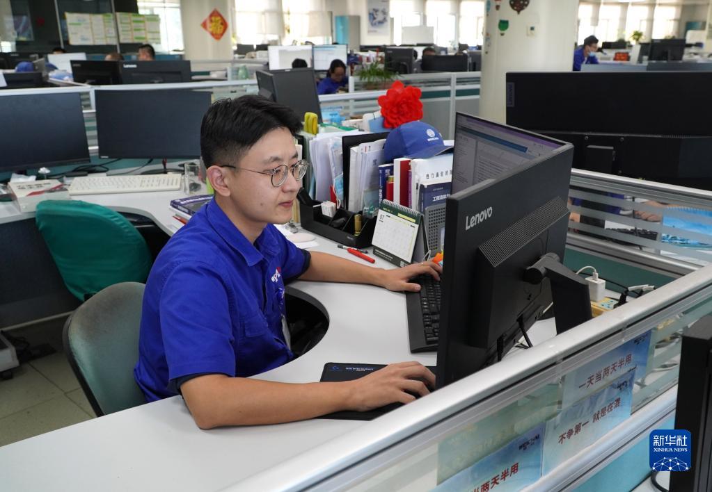 在山东省潍坊市,潍柴集团25岁的工程师付万鑫在工作中(9月19日摄)。