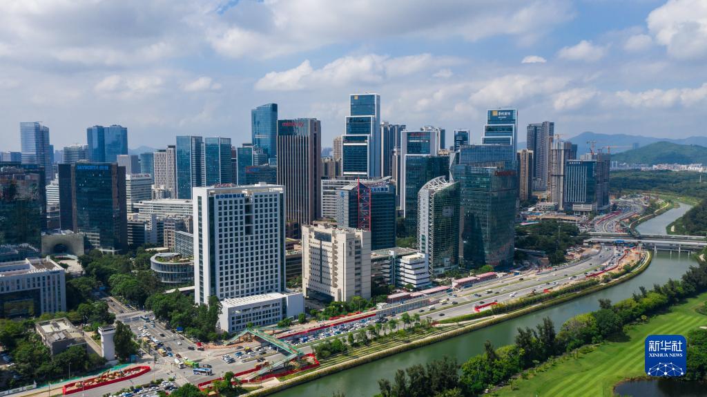深圳市南山区大沙河畔的科技园(2020年9月27日摄,无人机照片)。