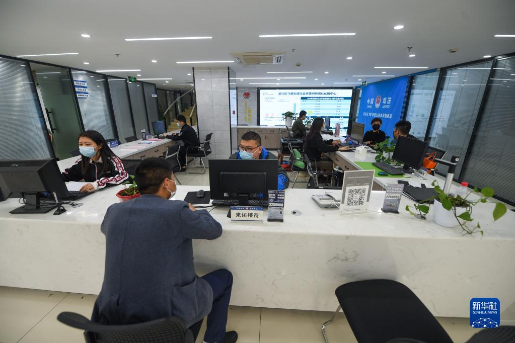 社区居民在浙江省湖州市吴兴区飞英街道矛盾纠纷调处化解中心进行咨询登记(2022年4月28日摄)。