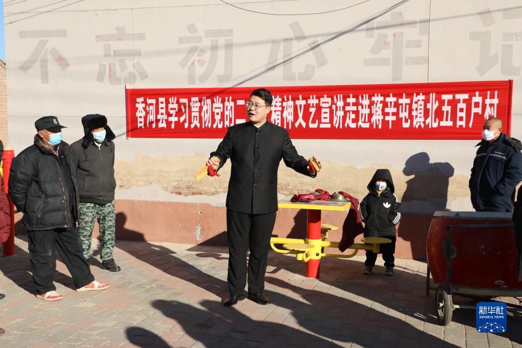 为推动党的二十大精神入脑入心、走深走实,香河县创新宣讲方法,以文艺创作为载体,用快板、京东大鼓、戏曲演唱等表演形式,把“大道理”讲成“小故事”。