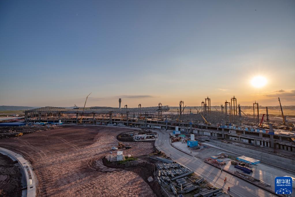 这是2022年10月1日拍摄的重庆江北国际机场T3B航站楼施工现场。