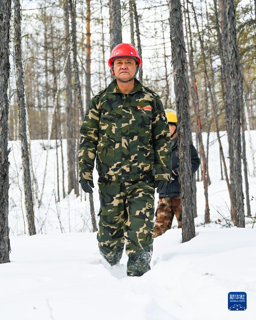 2月22日,周义哲在内蒙古森工集团满归森工公司乌龙岱林场前行。