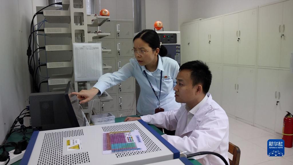 广西柳工集团有限公司的科研人员在实验室对电池进行全套电化学性能测试(6月27日摄)。