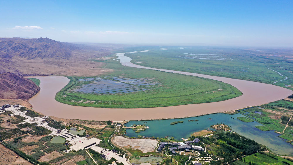 位于宁夏青铜峡市的黄河大拐弯景观(2021年8月5日摄)。