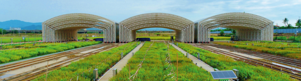 在位于三亚的国家耐盐碱水稻技术创新中心崖州湾总部科研试验基地,建设了高标准试验田、盐(碱)性精准鉴定盐池、自动防雨钢棚、水土盐碱度智能化监测系统等配套设施。