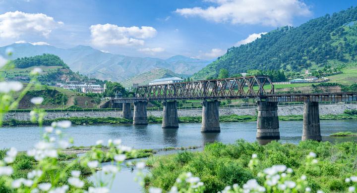 地处中朝边境、位于吉林省集安市的鸭绿江国境铁路大桥。