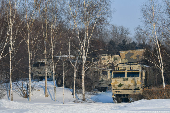 联勤保障部队某汽车运输旅运输分队开展战地驾驶课目训练。