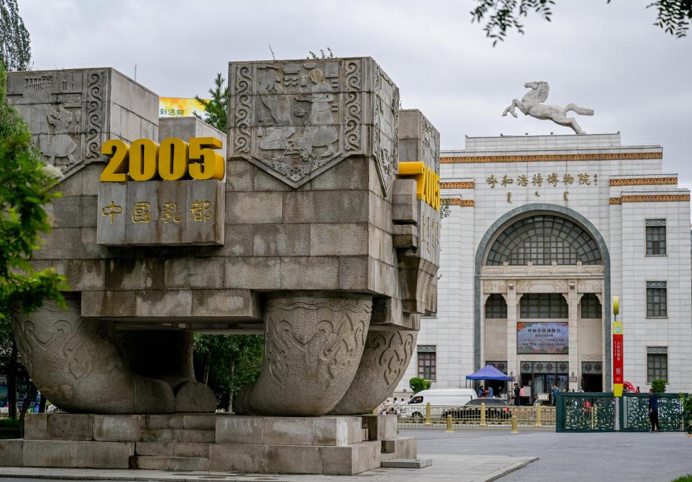 这是2024年8月11日拍摄的中国乳都雕塑和呼和浩特博物院