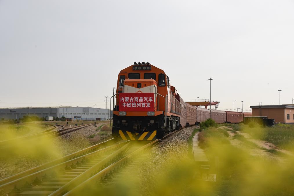 2024年6月12日,满载国产商品汽车的中欧班列驶出中国铁路呼和浩特局集团有限公司沙良物流园