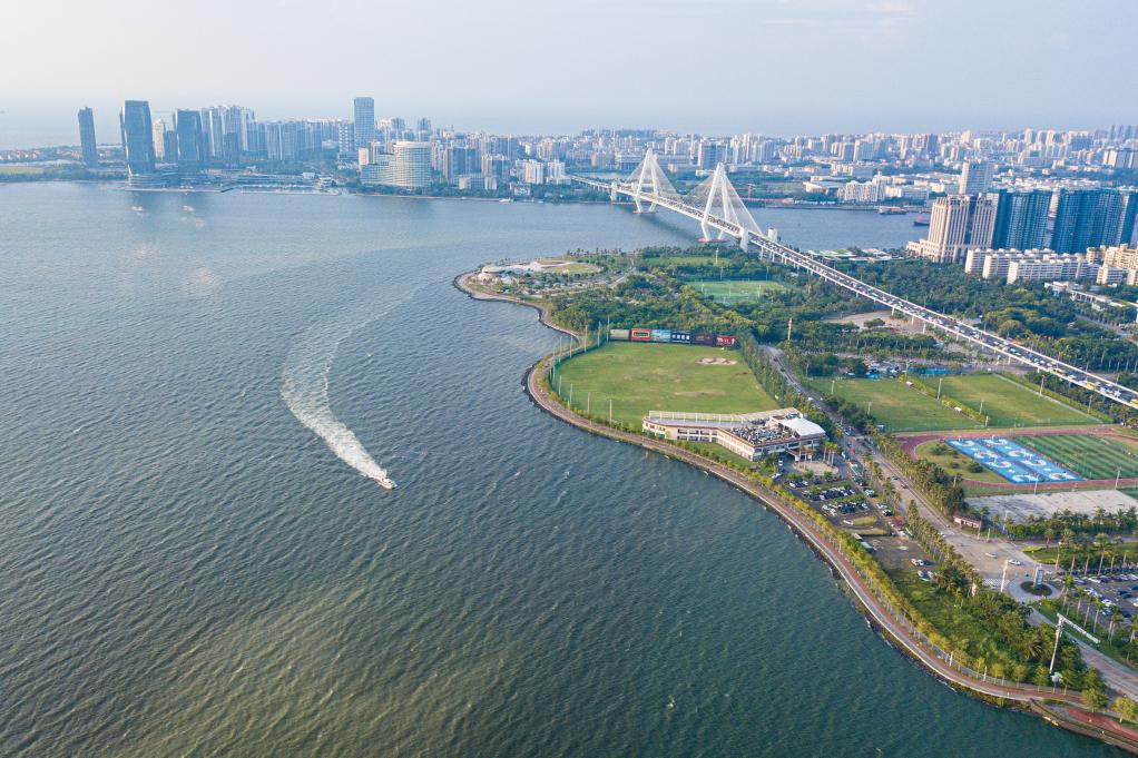 在海南省海口市拍摄的海口湾景色(无人机照片)。