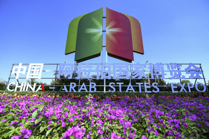 宁夏银川拍摄的第六届中国—阿拉伯国家博览会开幕式会场外景。