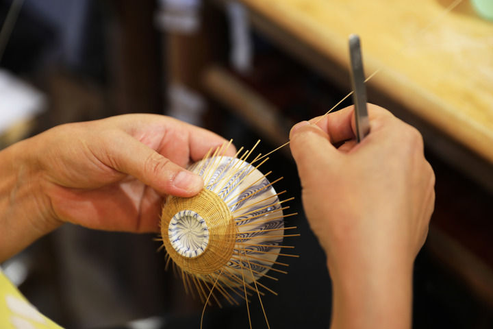 当地群众在贵州省赤水市大同镇极竹堂非遗竹编产学研基地编制竹编产品。