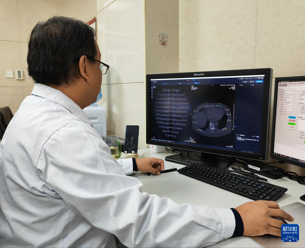 银川市第一人民医院医生使用人工智能辅助诊断系统阅片。