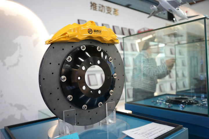 山东道普安制动材料有限公司展示的碳陶刹车盘产品。