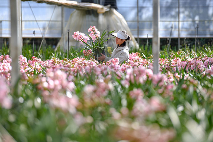 “通过引进设施农业和水肥一体化智能灌溉系统等,我们的种植方式有了质的提升,玫瑰产量和品质都提高了不少,4名种植工人就可完成20亩花田的基本工作。”从事花卉种植和交易20余年的花农杨涛说,节假日高峰期间,他一天售出的玫瑰高达14万枝。