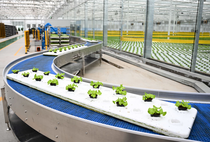 内蒙古鄂尔多斯市达拉特旗内蒙古现代数字农业科技产业园拍摄的生菜苗。