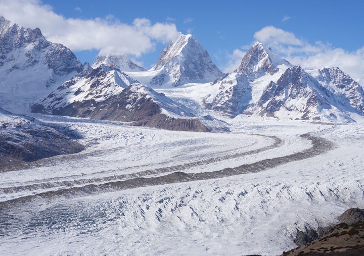 来古冰川位于西藏自治区昌都市八宿县然乌镇境内,因其外观形态独特壮美,成为川藏公路游客的打卡胜地。