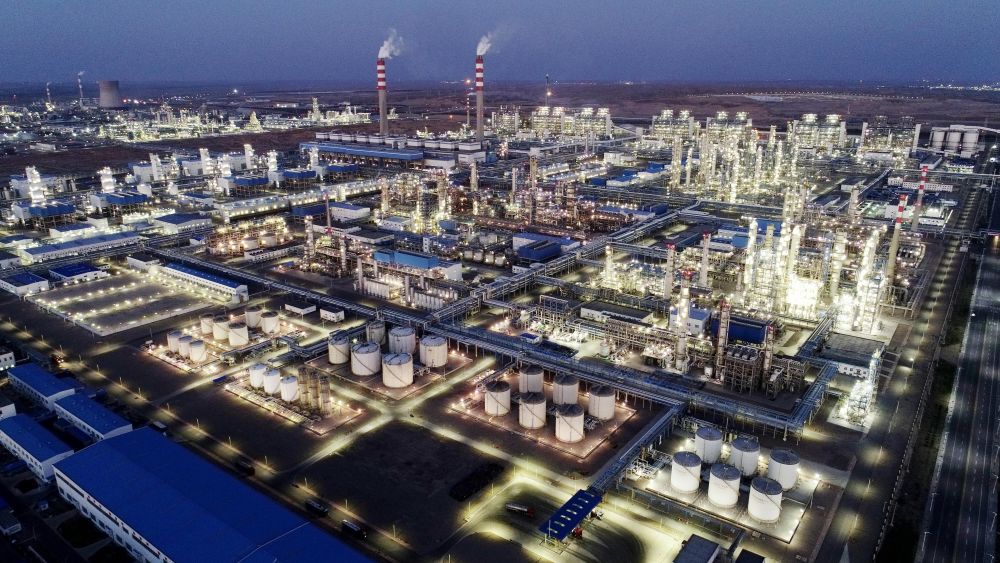 国家能源集团宁夏煤业公司400万吨煤制油项目夜景。