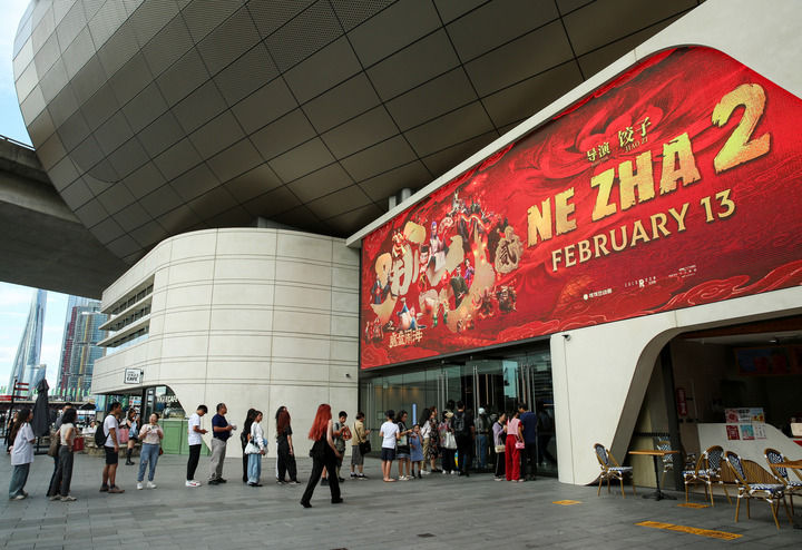 在澳大利亚悉尼,观众排队入场参加《哪吒之魔童闹海》悉尼首映礼。