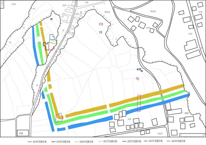 经过2018年至2024年的7次考古发掘,千年尘封的马家窑文化聚落缓缓浮现。总占地面积达近百万平方米的聚落由三重“围壕”环绕,内部房址密布,灰坑、陶窑、墓葬交错。令人讶异的是,三重平行分布的“围壕”每条宽达9至11米,内、外圈深约3至4米,且并非传统的圆形或不规则形,而是规整的长方形形制,与后世城墙“拐角”结构十分相似。