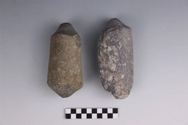 寺洼遗址内出土的马家窑类型石钻、石环半成品。