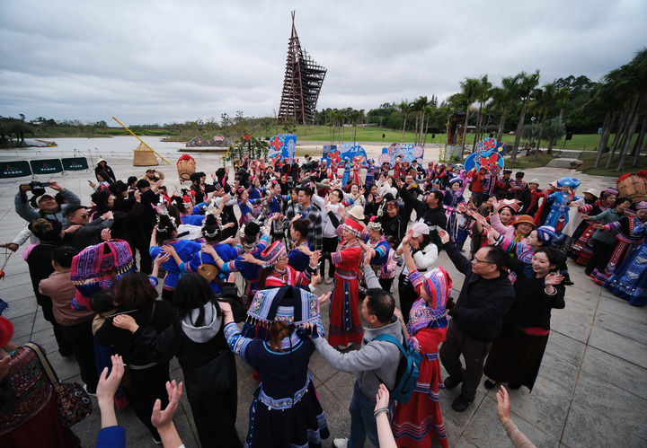 在百色近日启动的“和美红城 千姿百色”2025年三月三各族群众大联欢活动中,凌云瑶族长号、田东古壮拳、乐业壮族龙灯舞等各民族非遗表演纷纷亮相,各族群众和游客同唱一首歌、同跳一曲舞、同过一个节。